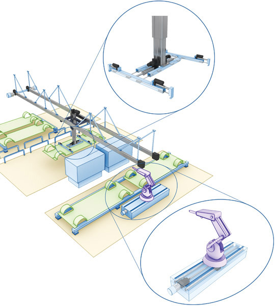 物料搬運(yùn)解決方案有時起到將無法相鄰布置的生產(chǎn)單元串連起來的作用。在這些單元之間移動貨物、零配件,意味著就要用速度來彌補(bǔ)距離,但不能妨礙其他流程。高架運(yùn)輸就是一種解決這個問題的方案,這樣貨物就不會占用人行道或叉車道,從而為其他生產(chǎn)設(shè)備騰出寶貴的地面空間。